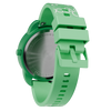 Das robuste Kunststoffgehäuse (ABS) ist angenehm leicht, während das grüne Silikonarmband mit blasenartigem Print an Seifenblasen erinnert.
