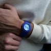 La Montre Blue von Magneto Watch ist eine elegante unisex Uhr, die auf klassische Zeiger setzt und dabei mit ihrer kreisrunden Zeigerspitze einen subtilen Verweis auf die markentypische Magnet-Technik liefert. Das Biokeramik-Gehäuse – ein innovativer Verbund aus Zirkonoxid-Keramik und biobasiertem Material – verleiht der Uhr Leichtigkeit, Robustheit und eine moderne, matte Optik.