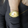 La Montre Yellow von Magneto Watch ist eine elegante unisex Uhr, die auf klassische Zeiger setzt und dabei mit ihrer kreisrunden Zeigerspitze einen subtilen Verweis auf die markentypische Magnet-Technik liefert. Das Biokeramik-Gehäuse – ein innovativer Verbund aus Zirkonoxid-Keramik und biobasiertem Material – verleiht der Uhr Leichtigkeit, Robustheit und eine moderne, matte Optik.
